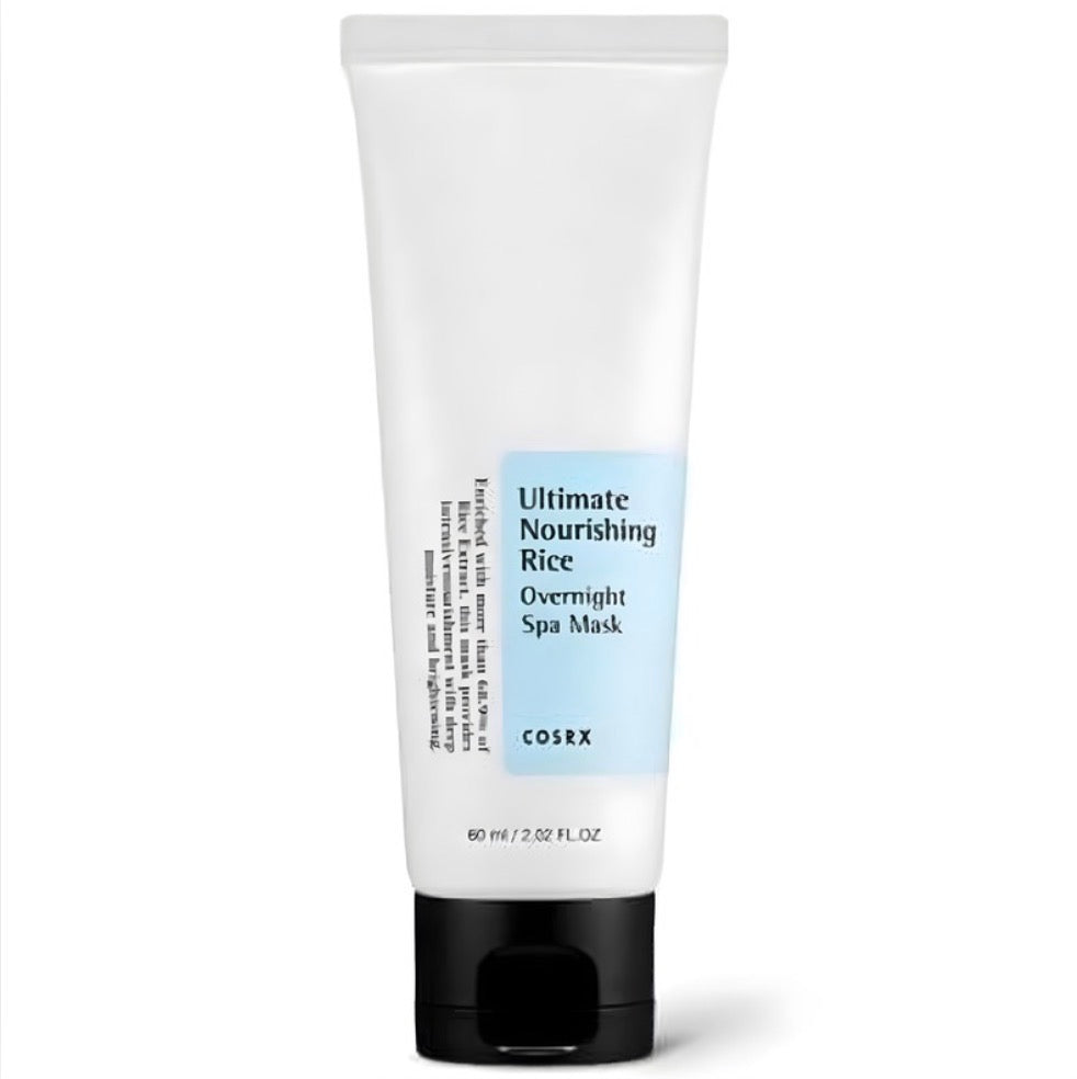 COSRX Ultimate Nourishing Rice Overnight Spa Mask is enriched with over 68% Rice Extract, providing deep nourishment and intense hydration for clearer and softer skin. This mask also has brightening and softening effects on dull, flaky skin, thanks to its formula containing rice extract and niacinamide. Additionally, it nourishes and moisturizes tired skin, leaving it feeling soft, replenished, and non-greasy.