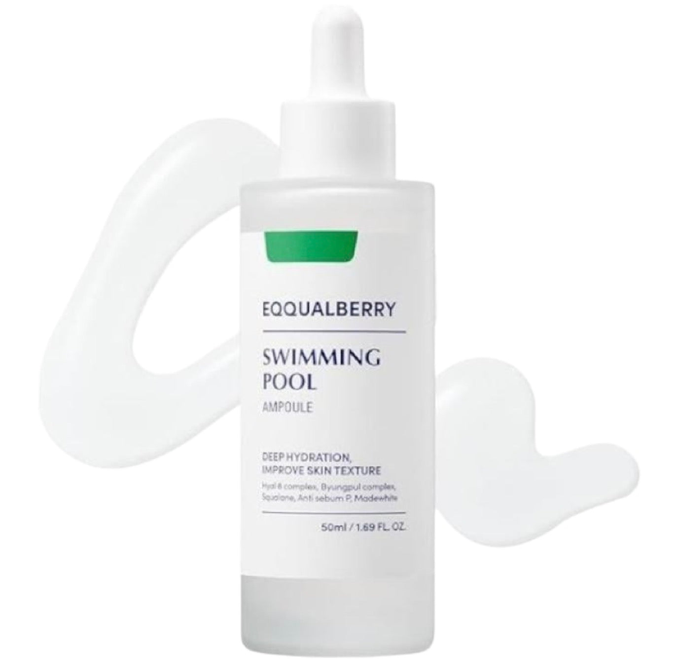EQQUALBERRY Swimming Pool Ampoule is a deeply moisturizing vegan ampoule designed to deliver intensive hydration and pore care. Formulated with 8-layer Hyaluronic Acid, it penetrates multiple skin layers to instantly fill dryness and create a smooth, plump texture.