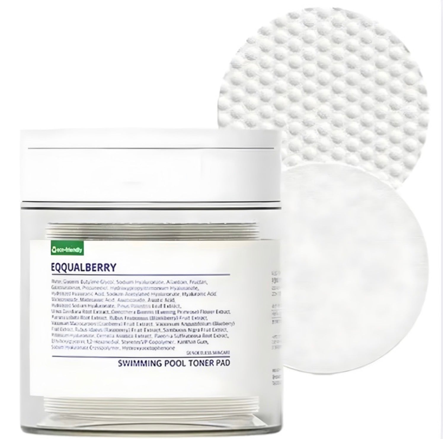 EQQUALBERRY Swimming Pool Toner Pads are gentle, dual-sided vegan pads designed to refine pores, exfoliate dead skin cells, and replenish hydration without irritation.
