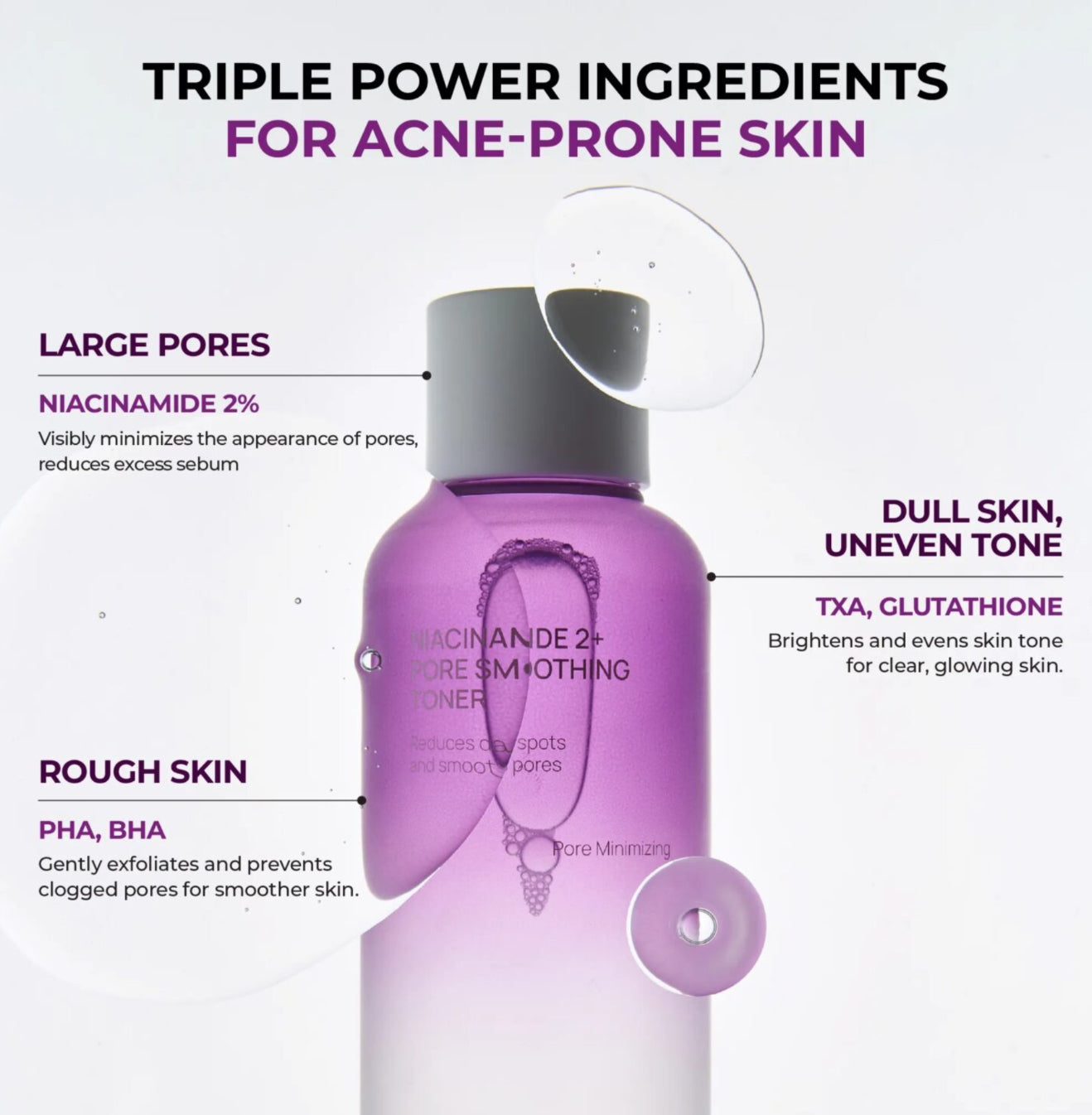 - Salicylic Acid: A beta-hydroxy acid (BHA) that can help with pore concerns like congestion and blemishes.