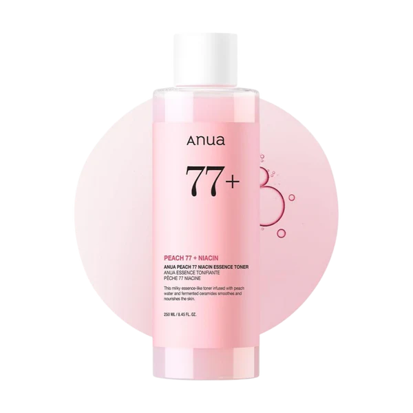 The ANUA Peach 70% Niacin Essence Toner is a vegan, cruelty-free, and non-comedogenic formula designed to deliver smooth, hydrated, and glowing skin. Powered by 77% Prunus Persica (Peach) Fruit Extract, rich in minerals, vitamins, and polyphenols, it deeply hydrates while refining skin texture for a flawless, luminous base.