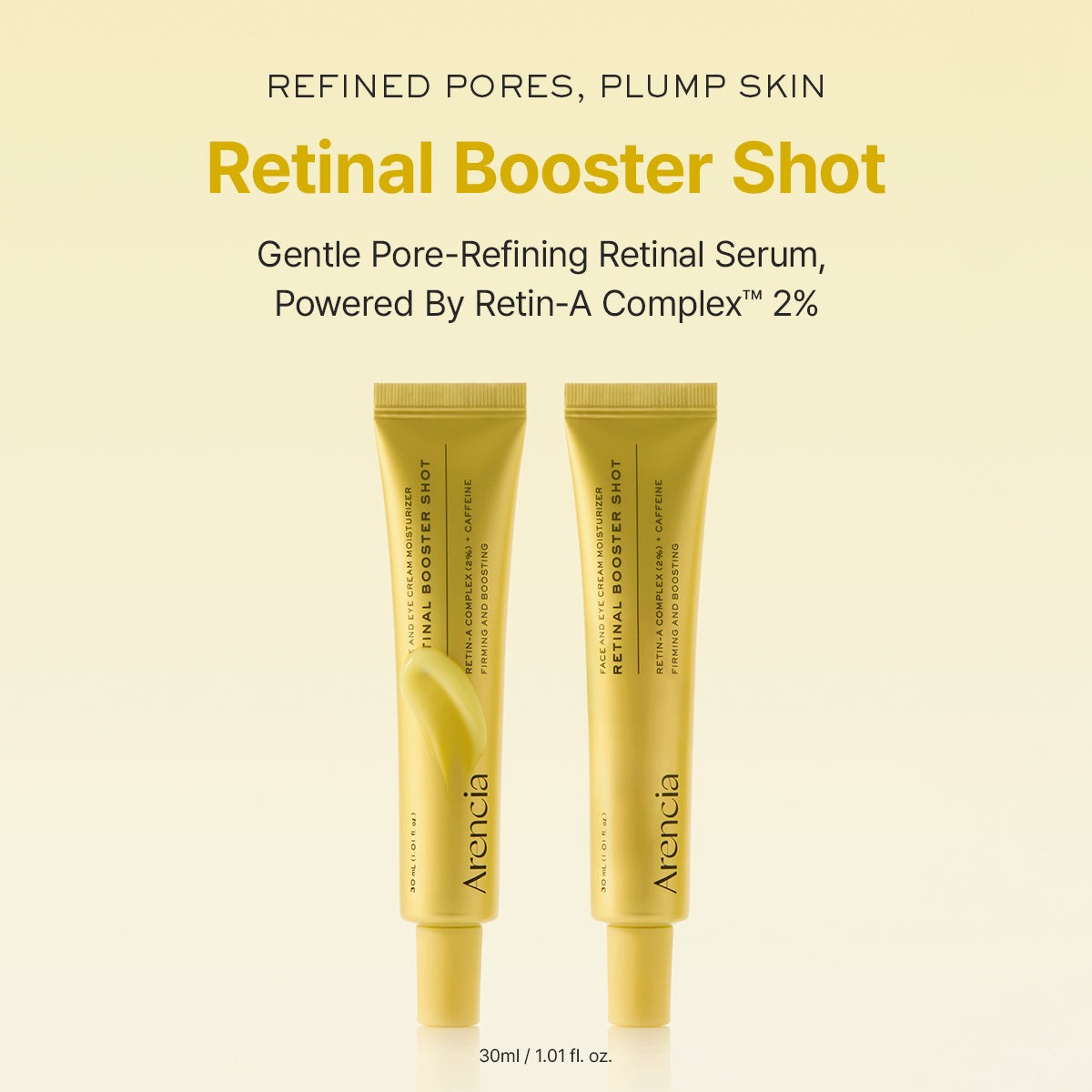 Experience visible skin renewal with the ARENCIA Retinal Booster Shot, a powerful yet gentle retinal serum powered by Retin-A Complex™ 2%. This advanced formula refines pores, improves elasticity, and smooths fine lines, delivering deep absorption through LDH nano-encapsulation and multi-liposome technology for minimal irritation and maximum results. Ideal for those seeking to enhance skin texture, firmness, and overall complexion, this serum supports long-term skin renewal with a smooth, lifted appearance.