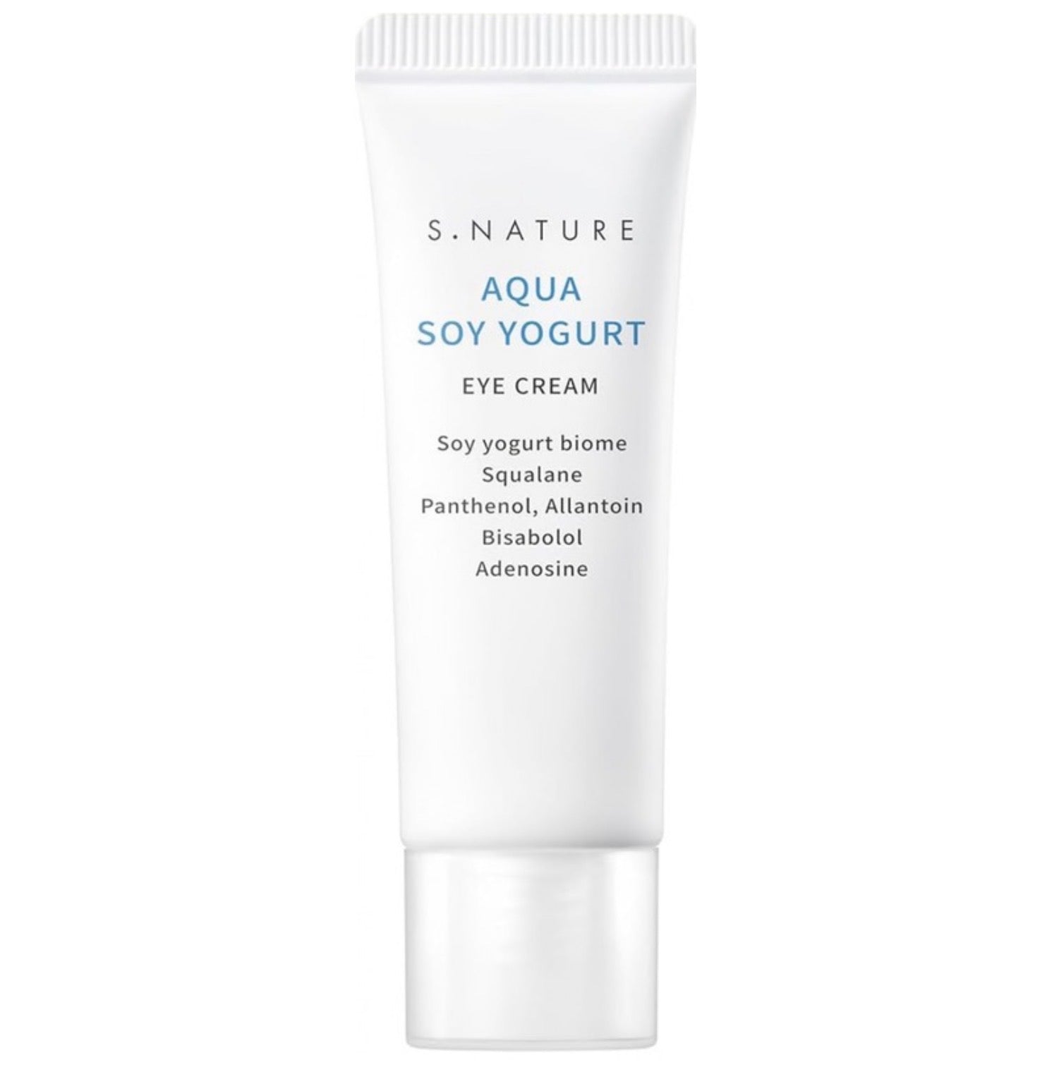 S.NATURE Aqua Soy Yogurt Eye Cream is designed to rejuvenate and tighten the delicate skin around the eyes. Infused with fermented Black Soybeans and Soy Yogurt Biome, this eye cream is rich in probiotics to support a healthy, elastic skin barrier. Panthenol and Squalane lock in moisture to keep the eye area bright, firm, and well-hydrated. The addition of Shea Butter, Castor Oil, and Olive Oil further nourishes and helps stimulate collagen production, improving the appearance of fine lines and wrinkles.