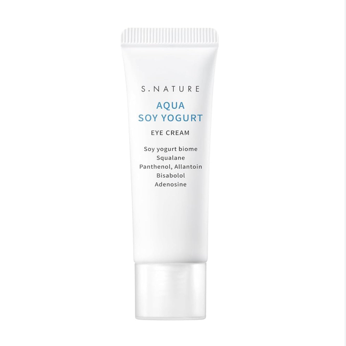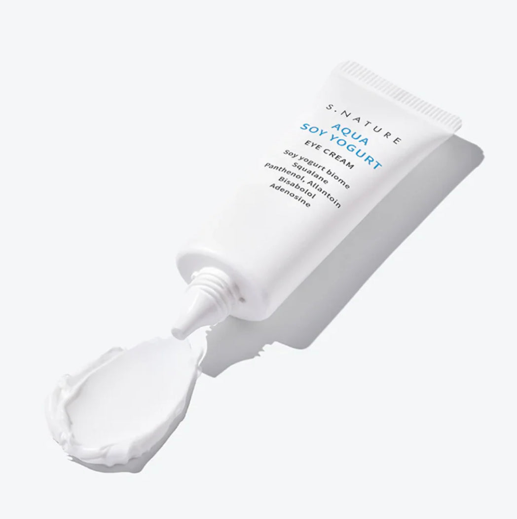 S.NATURE Aqua Soy Yogurt Eye Cream is designed to rejuvenate and tighten the delicate skin around the eyes. Infused with fermented Black Soybeans and Soy Yogurt Biome, this eye cream is rich in probiotics to support a healthy, elastic skin barrier. Panthenol and Squalane lock in moisture to keep the eye area bright, firm, and well-hydrated. The addition of Shea Butter, Castor Oil, and Olive Oil further nourishes and helps stimulate collagen production, improving the appearance of fine lines and wrinkles.