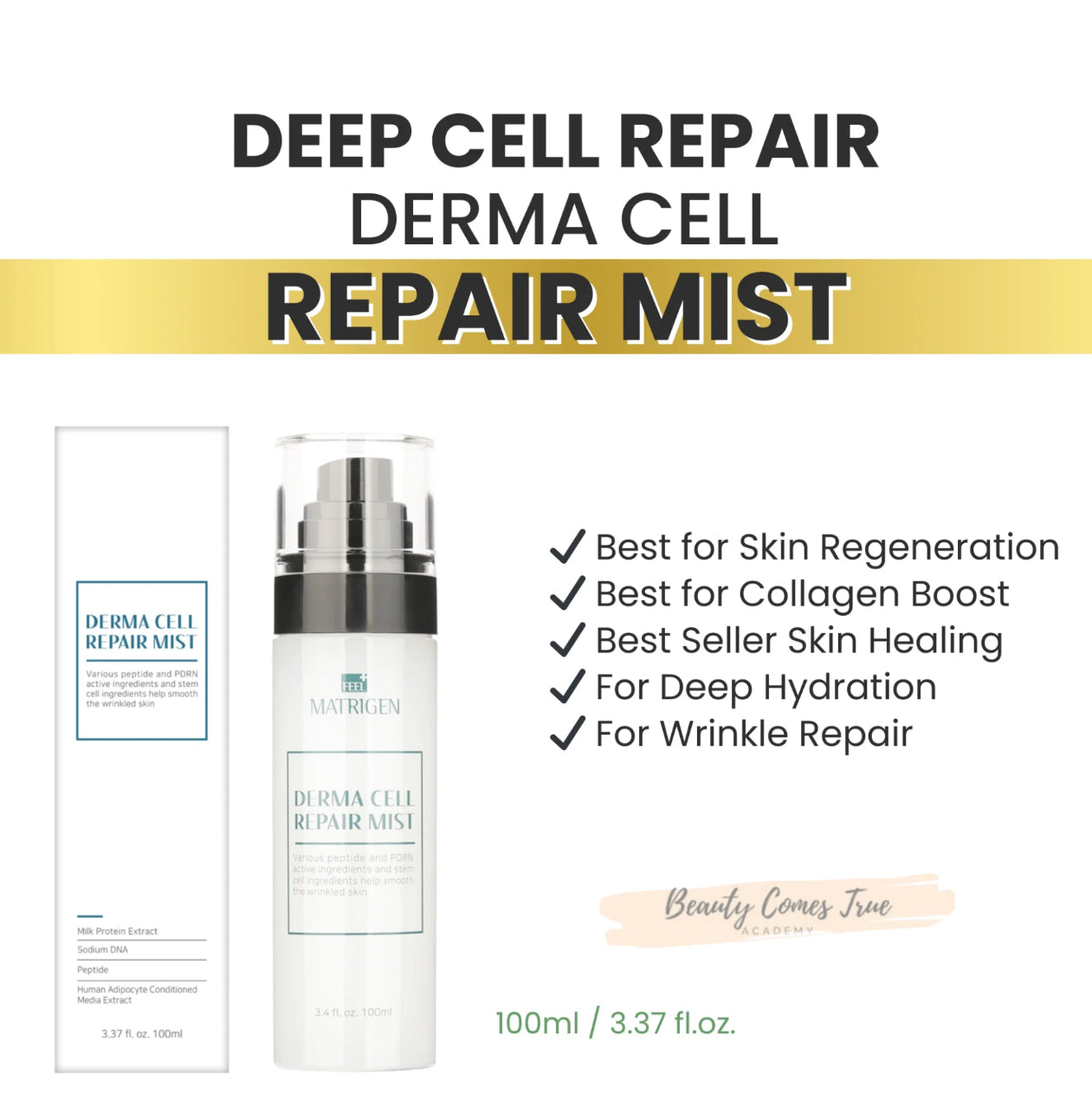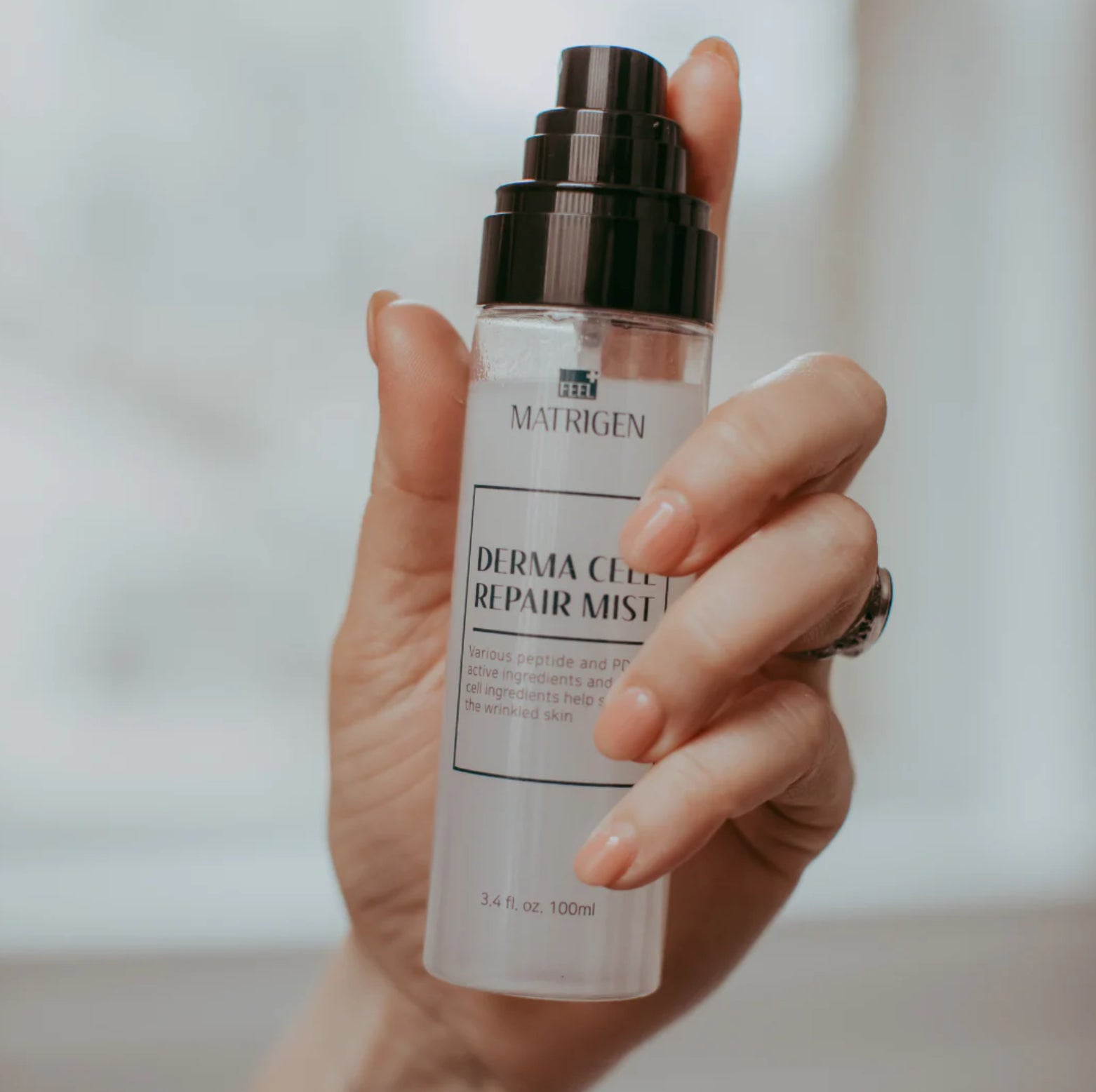 Matrigen Derma Cell Repair Mist is formulated with powerful active ingredients like peptides, PDRN, and stem cells, providing benefits such as improved skin texture and visibly diminished wrinkles. This product is recommended for early signs of skin firmness and elasticity loss.