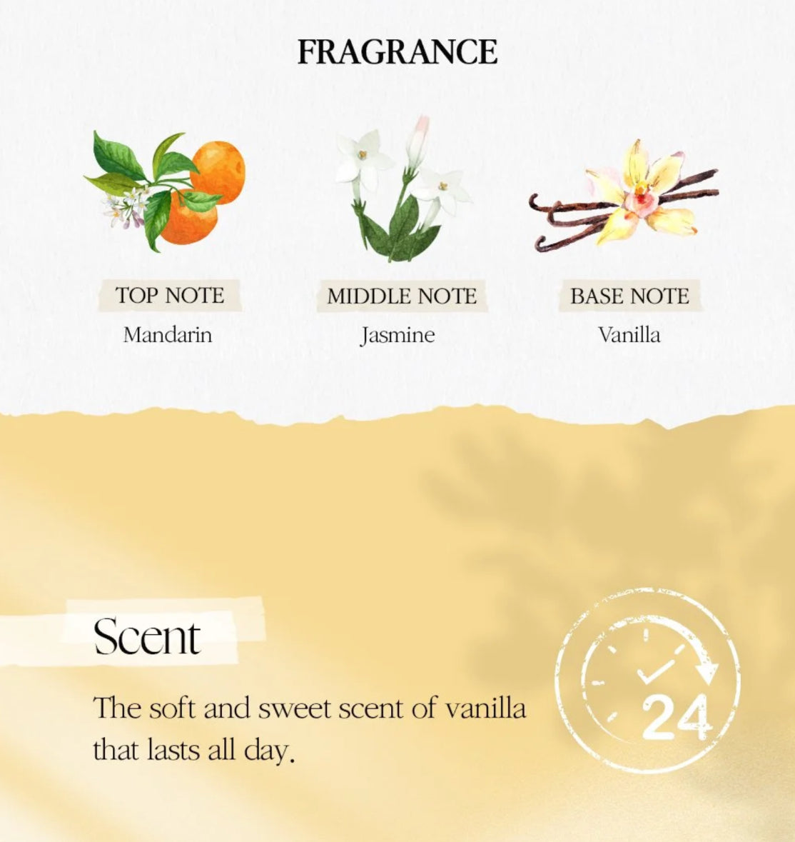 IDEAL FOR: Daily freshness | Long-lasting gentle fragrance | Warm vanilla lovers