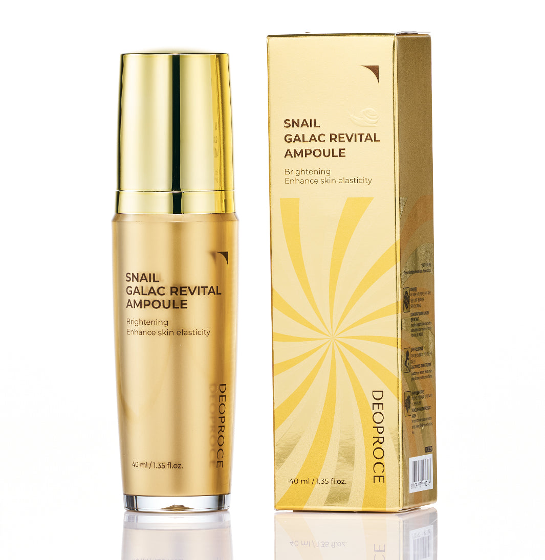 Experience the rejuvenating power of Deoproce Snail Galac Revital Ampoule, a highly concentrated nourishing formula that delivers deep hydration, radiance, and firmness to the skin.