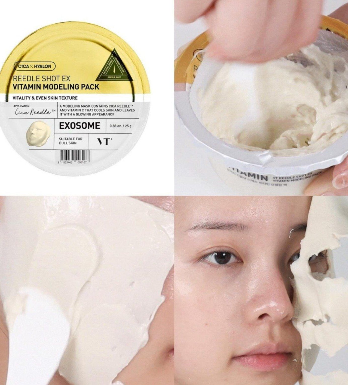 Experience a spa-level treatment right at home with the VT Reedle Shot Ex Vitamin Modeling Pack 25g. Formulated with Cica Reedle™ and Vitamin C, this modeling mask offers brightening and anti-aging benefits, leaving your skin with a glowing, youthful appearance. Infused with milk exosomes, it also provides deep nourishment to promote skin repair and regeneration. The American Diatomaceous Earth effectively absorbs waste and allows the mask to fold well without clumping, making it easier to use.